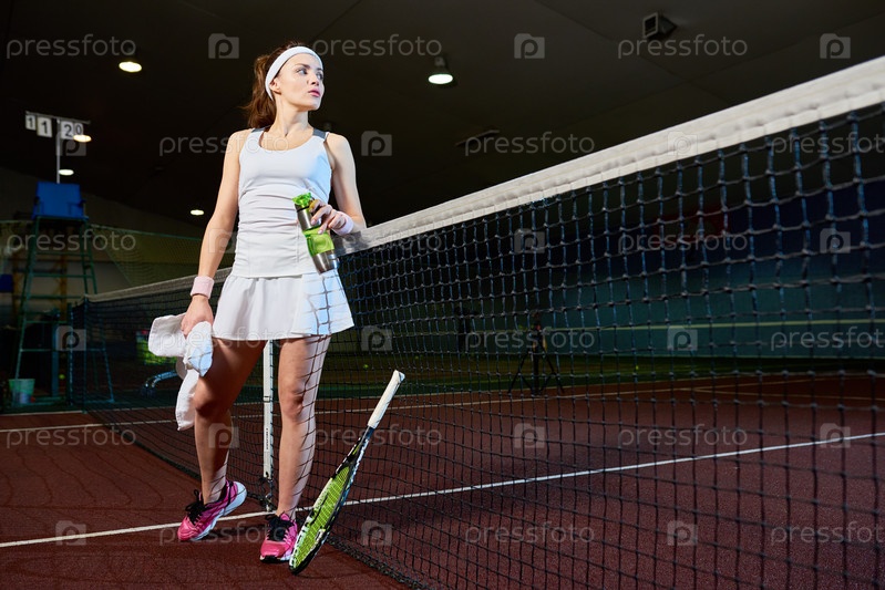 Женская теннисистка делает перерыв