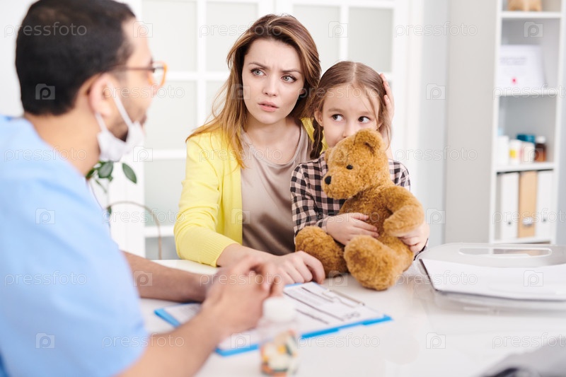 Обеспокоенная мать в кабинете врача