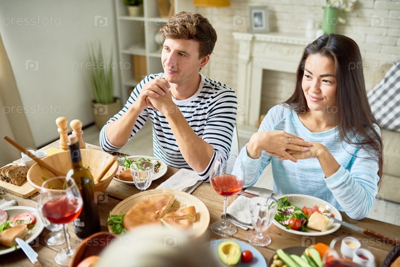Молодая пара за обеденным столом