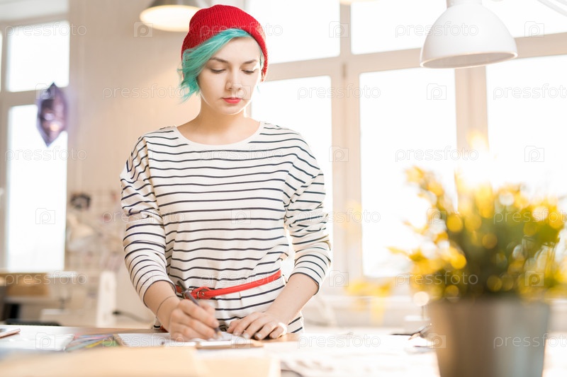 Молодая женщина, работающая в Atelier Edgy