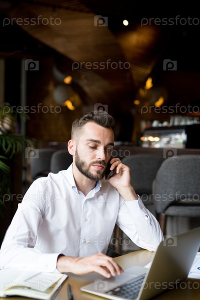 Красивый бородатый мужчина разговаривает по телефону