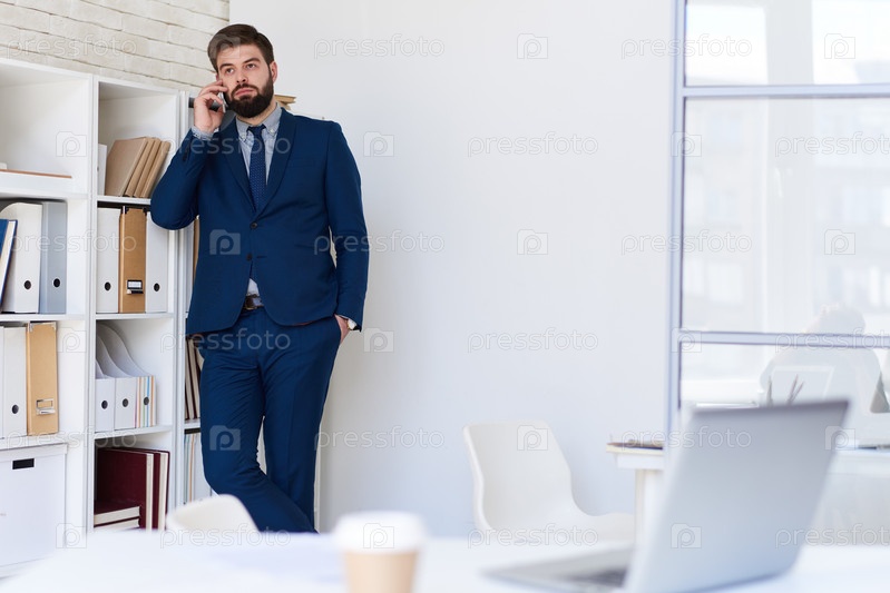 Человек, совершающий телефонный звонок в офисе Бизнес