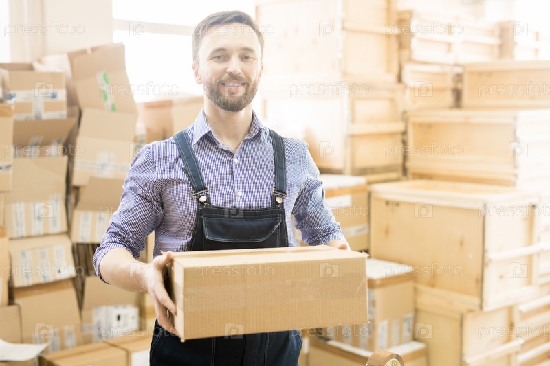 Позируя для фотографии на фабричном складе