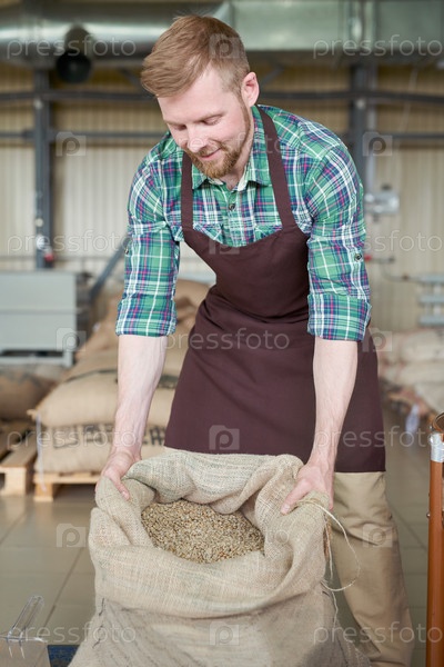 Красивый мужчина открывает кофейную сумку
