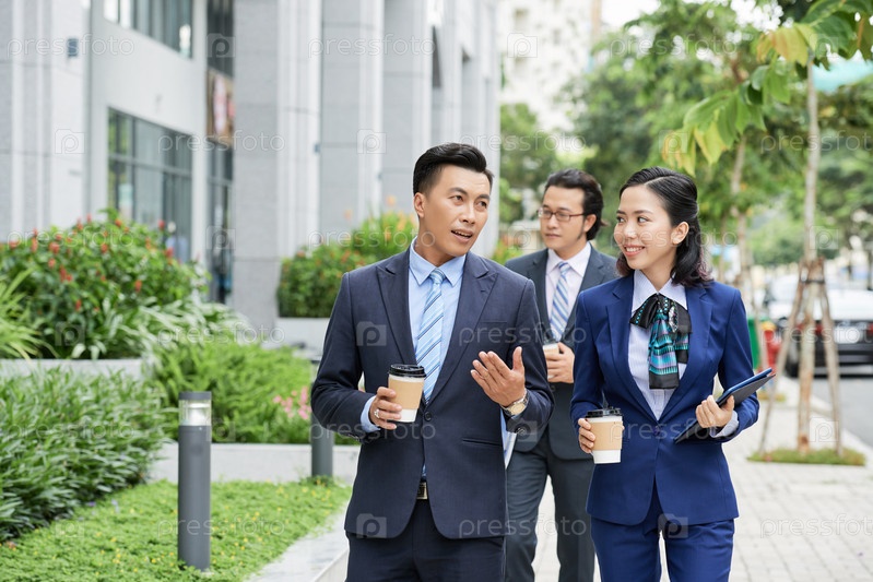 Говорят этнические бизнесмены, гуляющие по улице