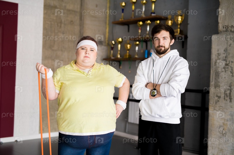 Уверенная в себе тучная женщина на фитнес-классе
