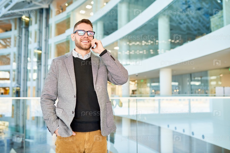 Бизнесмен разговаривает по телефону в офисном здании