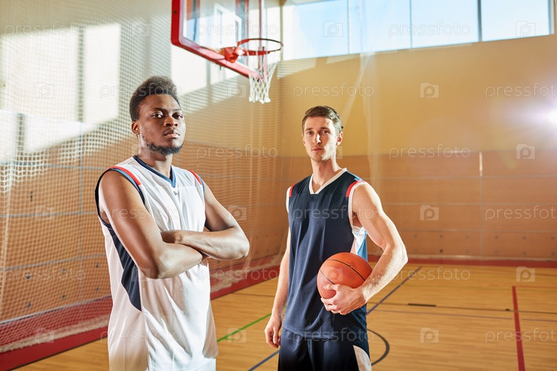 Уверенные успешные ведущие баскетбольные игроки на корте