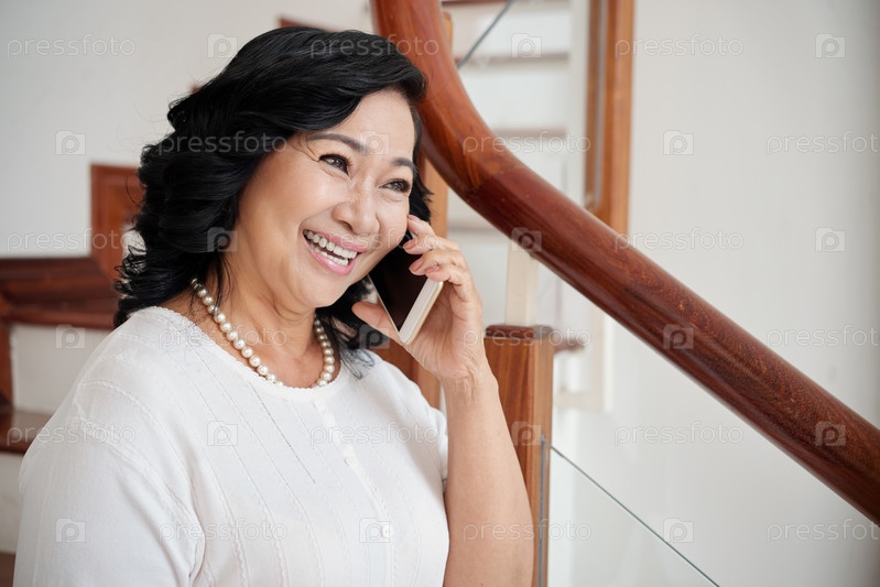 Веселая женщина разговаривает по телефону