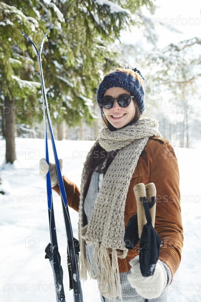 Молодая женщина на горнолыжном курорте