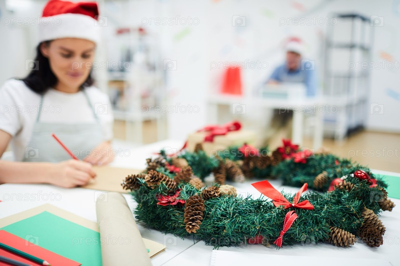Рождественский венок на офисном столе