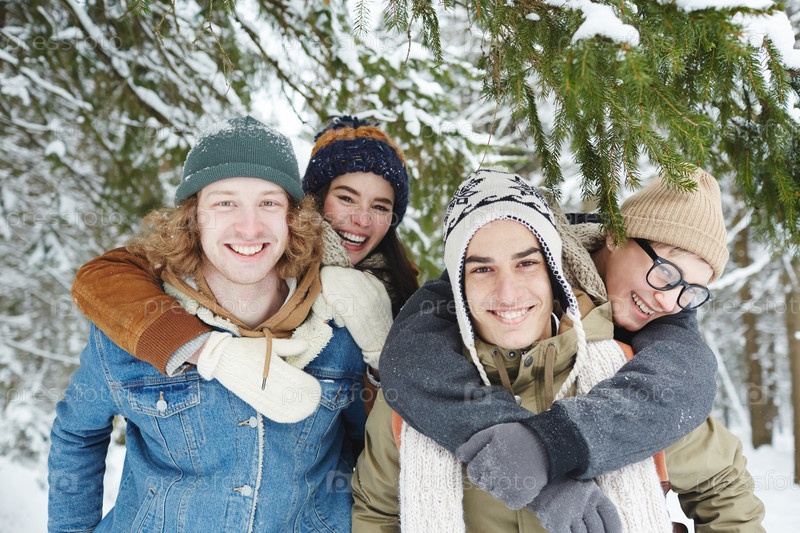 Счастливые пары в зимнем лесу