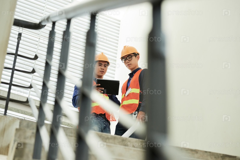 Строительные инженеры обсуждают работу