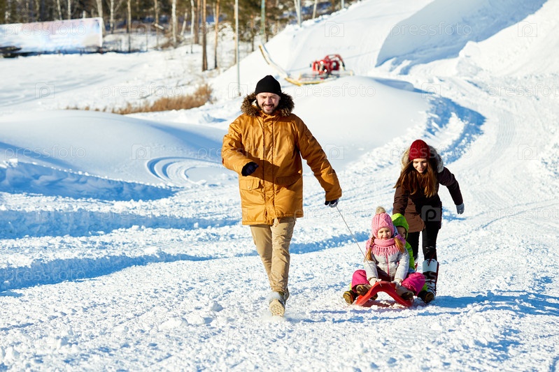 Веселая прогулка на санях в зимние каникулы