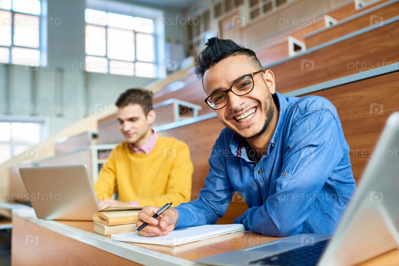 Счастливый ближневосточный мужчина в колледже