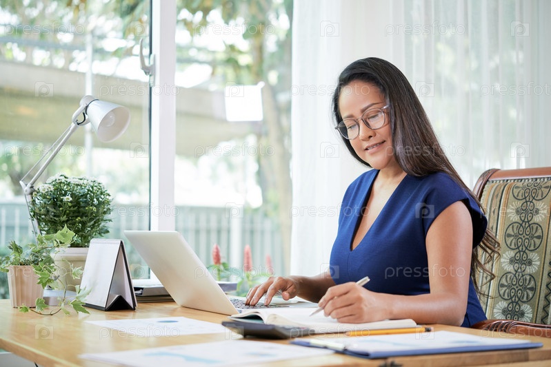 Взрослая бизнесвумен, работающая за столом с ноутбуком