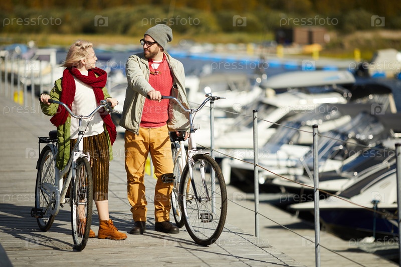Пара, разговаривающая на велосипедном свидании