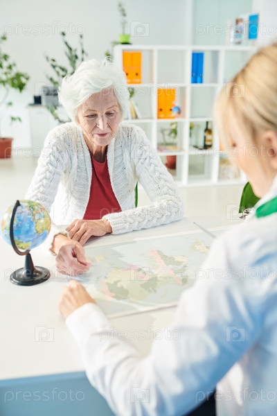 Пожилая женщина спрашивает у турагента о туре