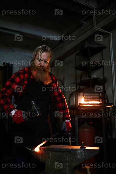 Брутальный кузнец, ковающий слитки из кованого железа