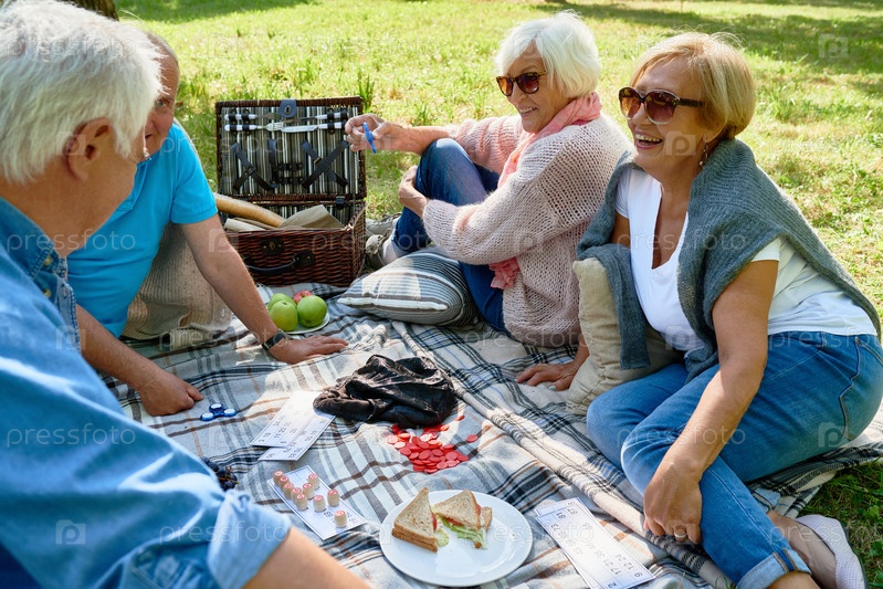 Люди старшего возраста, наслаждающиеся пикником в парке