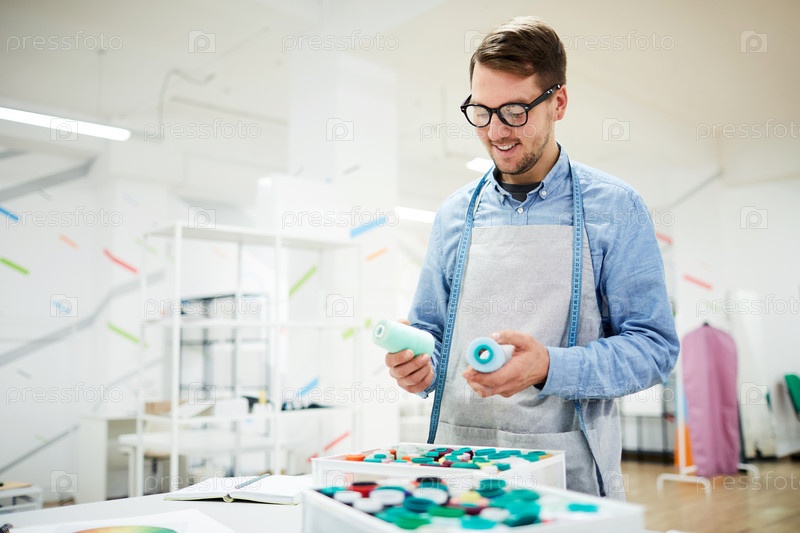 Веселый портной выбирает цвет нитей