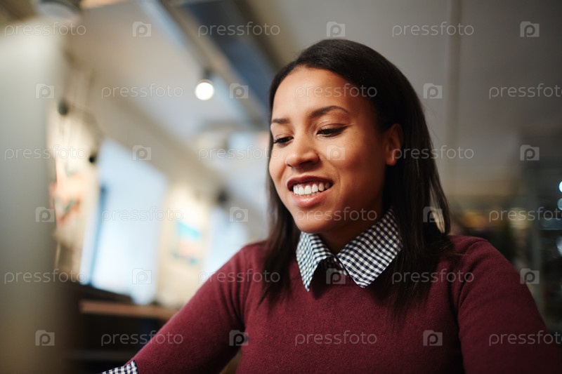 Улыбающаяся женщина использует ноутбук