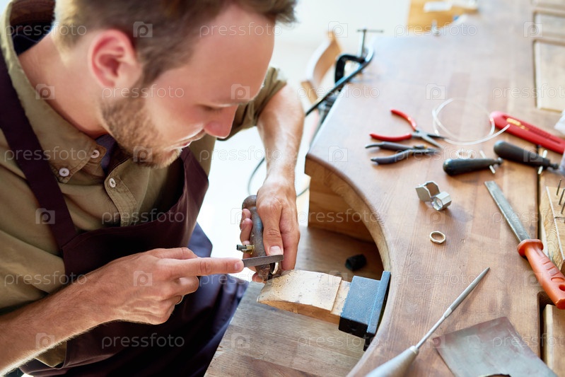 Ювелир делает кольцо в мастерской