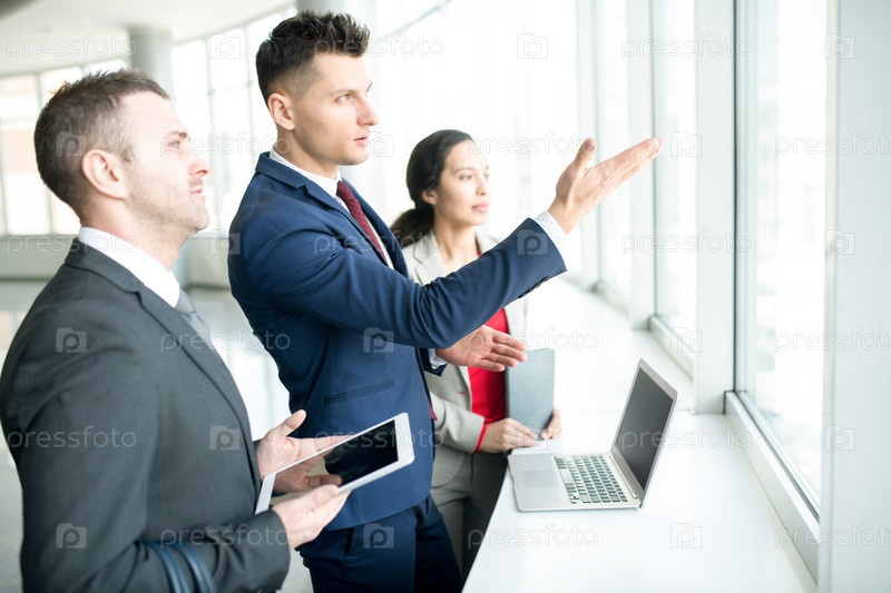 Амбициозный бизнесмен, указывающий на окно