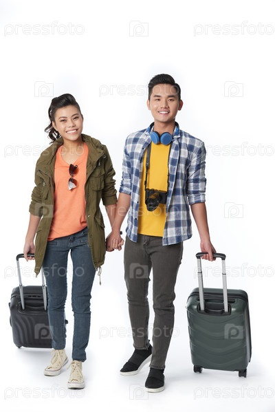 Любящая азиатская пара, ожидающая поездку