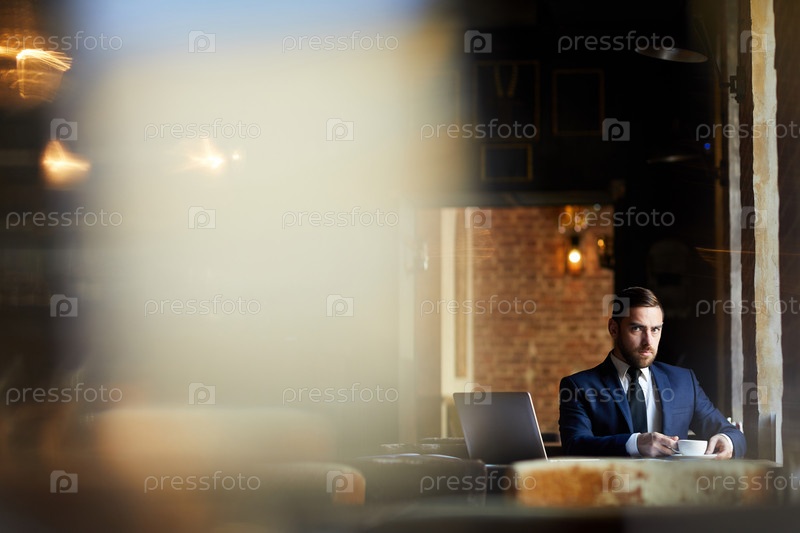 Серьезный бизнесмен с чашечкой кофе