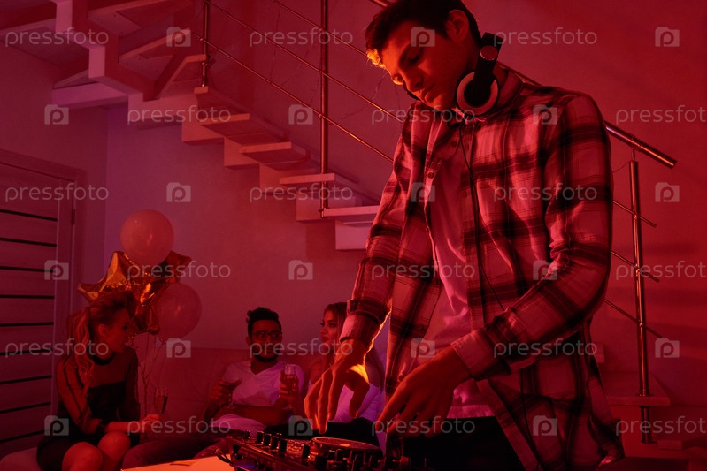 Смешивание музыки на рождественской вечеринке Человек