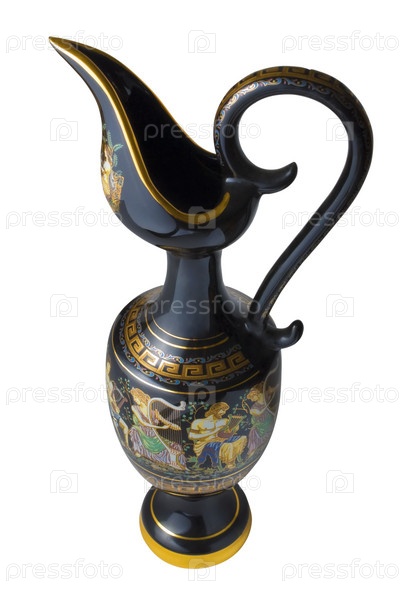 Греческая черная ваза с сюжетом изобилия на белом фоне