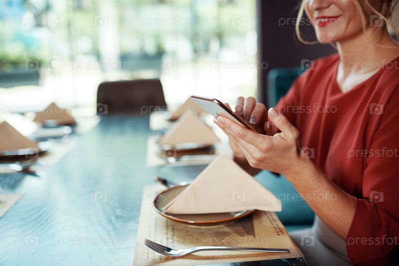 Улыбающаяся женщина проверяет телефон