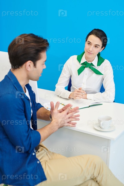 Контент-банк клиентский представитель делает заметки во время прослушивания