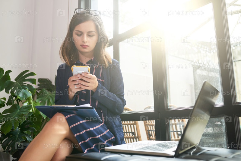 Деловая женщина, отправляющая сообщения коллегам