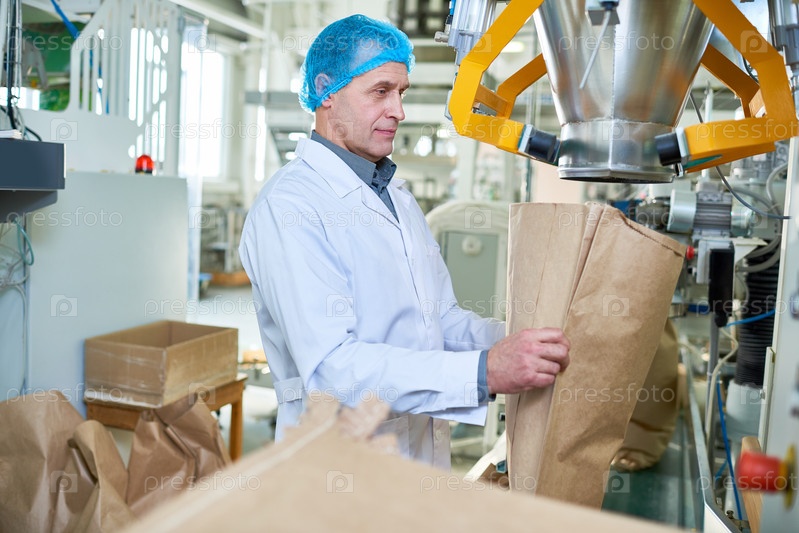 Старший фабричный работник, работающий на упаковочной линии
