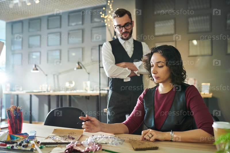 Стилисты, обсуждающие ювелирные изделия