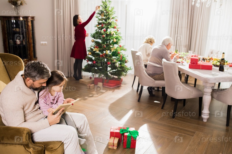 Зрелый отец читает девочке