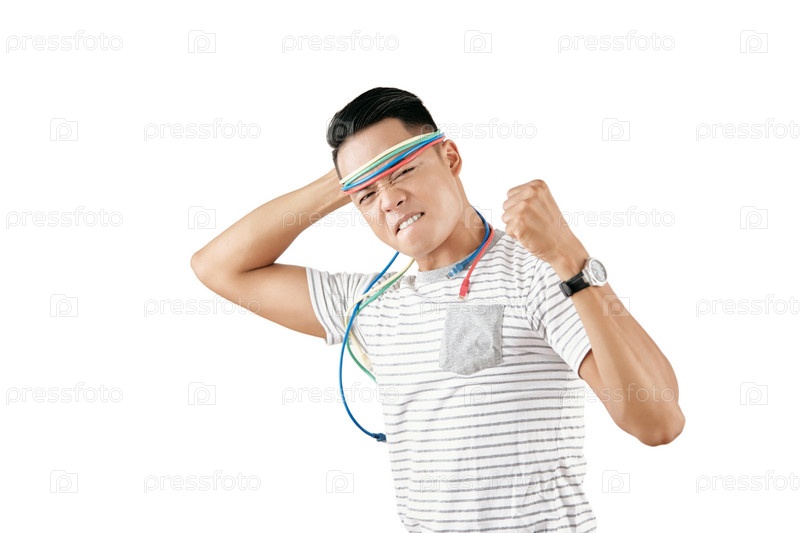 Игральный мужчина с кабелями USB
