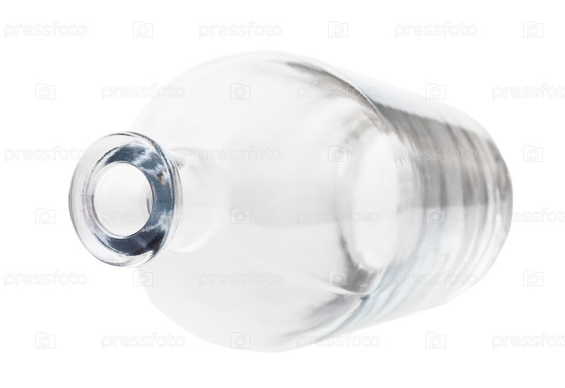 Опрокинутая пустая бутылка прозрачного ликера изолирована