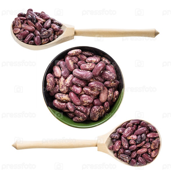 Набор красных пятнистых бобов пинто, изолированных на белом