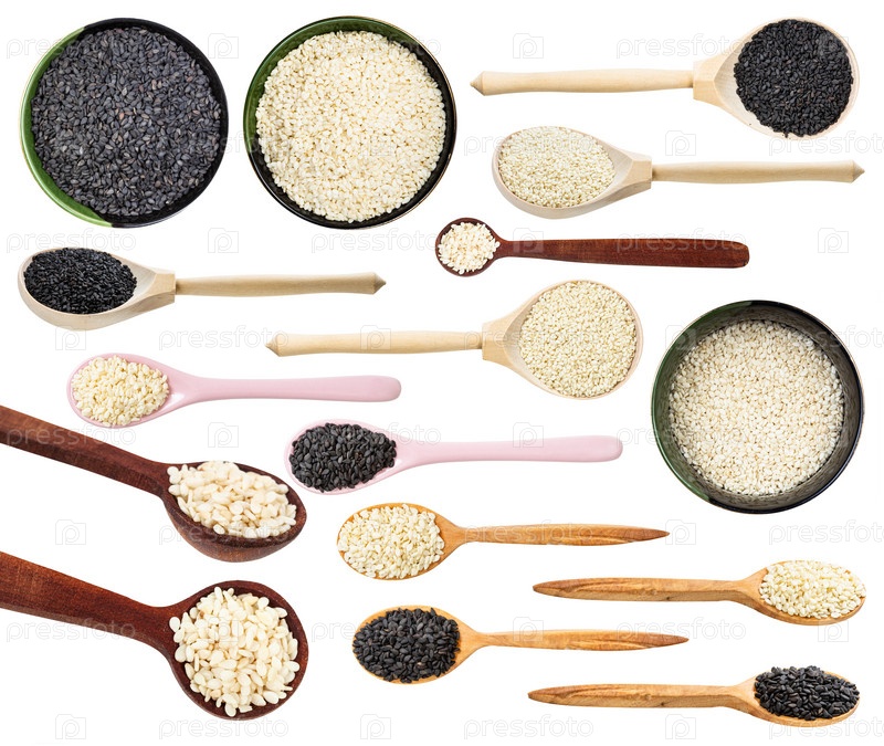 Набор различных семян кунжута, изолированных на белом
