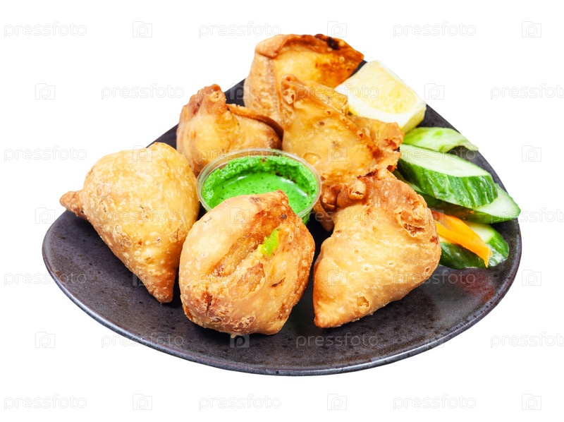 Самоса (жареное пикантное тесто) на изолированной тарелке