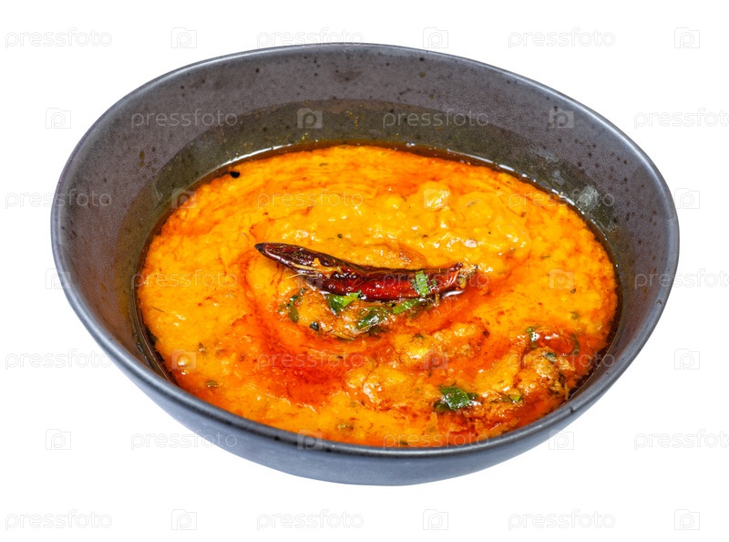 Порция желтого Dal Tadka в черной миске изолирована