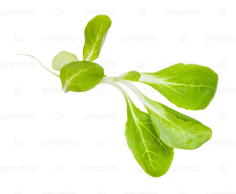 Зеленая веточка кукурузного салата (маше) изолирована