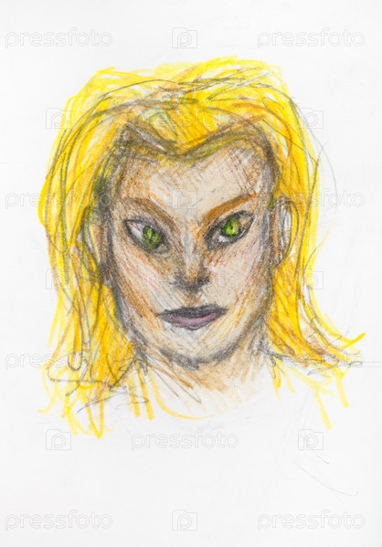 Портрет женщины-кошки с желтыми волосами карандашами