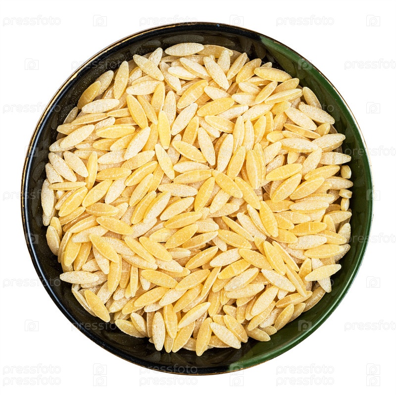Паста ризони в круглой миске, изолированная на белом