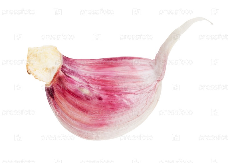 Неочищенный зубчик свежего чеснока, изолированный на белом
