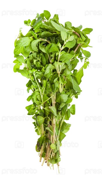 Пучок свежих веточек майорана, изолированных на белом
