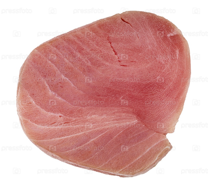 Свежий стейк из тунца, изолированный на белом